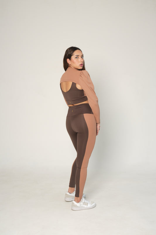 SHOULDER + TOP + LEGGIN / BROWN AND CAMEL